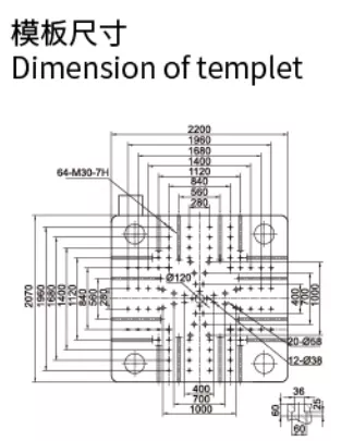 Oil pump motor power | KW | 40.9+40.9+40.9+40.9 | Template outline dimension (mm) | 2210×2230 | ||||